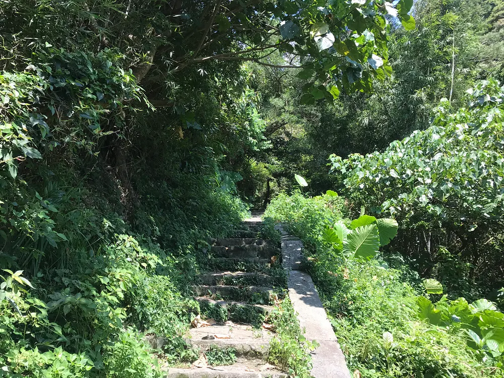 從785公車下車後,停車場內有公廁,面對公廁的右手邊斜坡往上走就會看到石梯步道,一開始因為樹林草叢茂密還以為走錯了