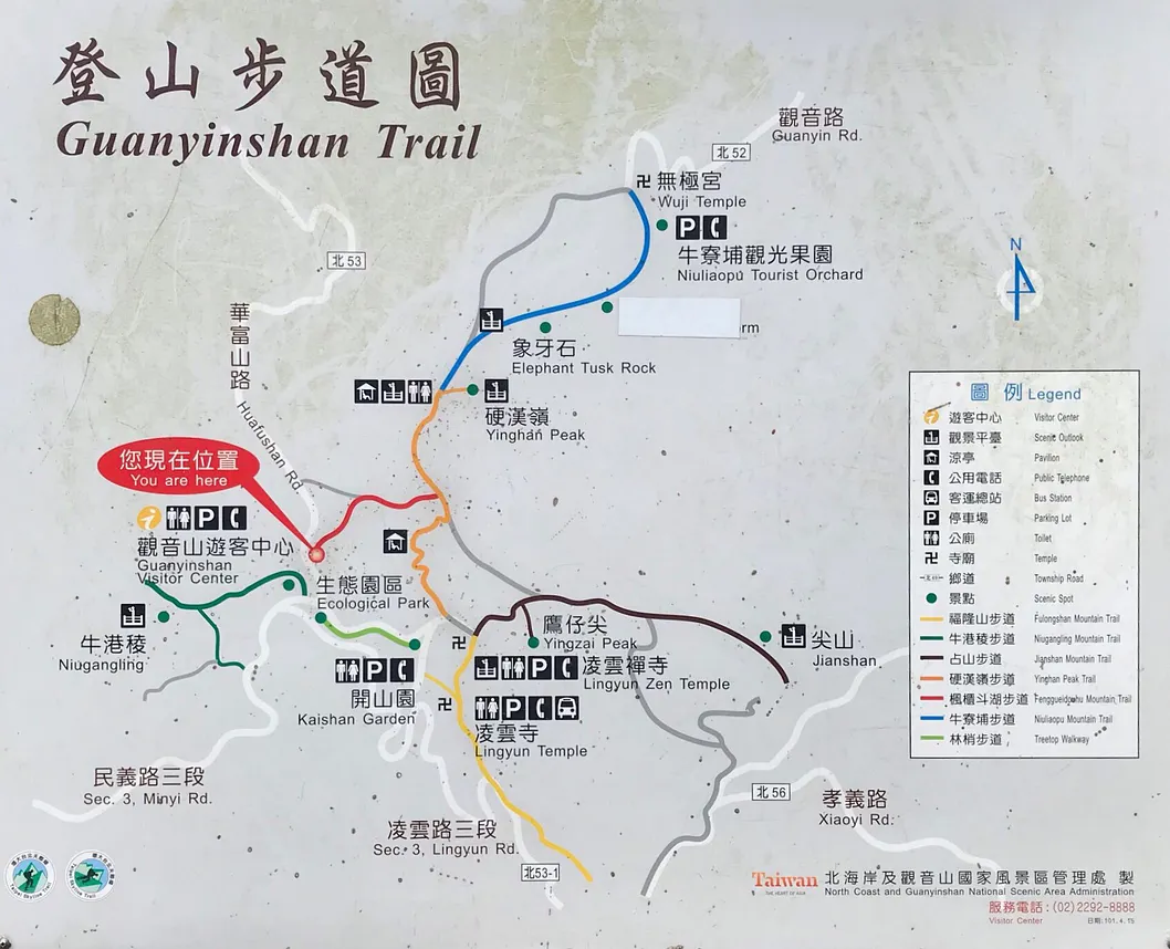 從凌雲禪寺走到硬漢嶺登山步道口發現正在整修,延著馬路往遊客中心的方向走,跟著告示牌選擇右邊的岔路找到楓櫃斗湖登山步道口