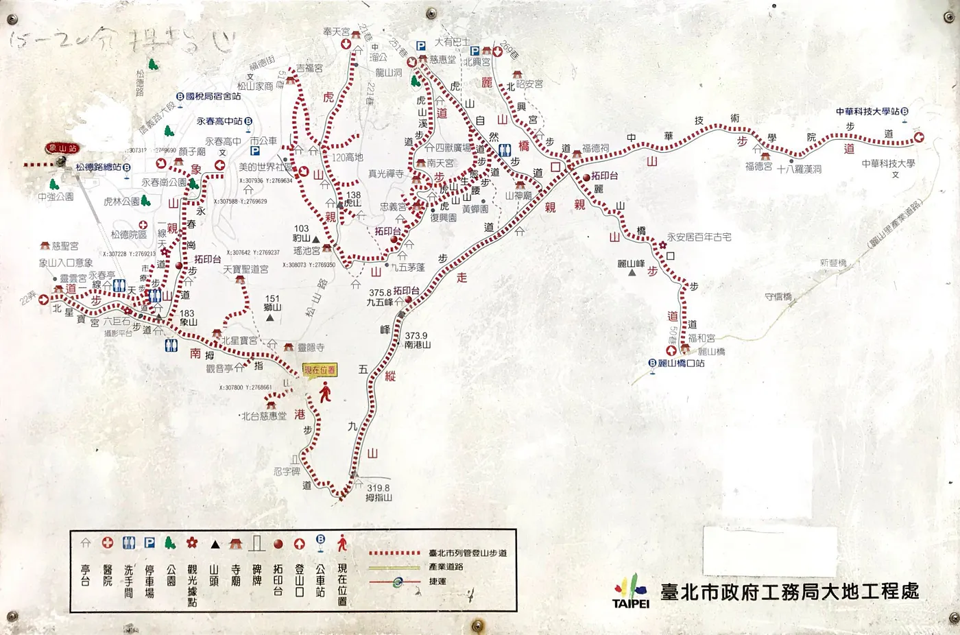 因為下午要上一年一度的糖尿病衛教學會的年會課程,爬到九五峰後,看告示牌寫著到中華科技大學要80分鐘,怕上課趕不及,因此選擇原路折返,邊走邊跑下山