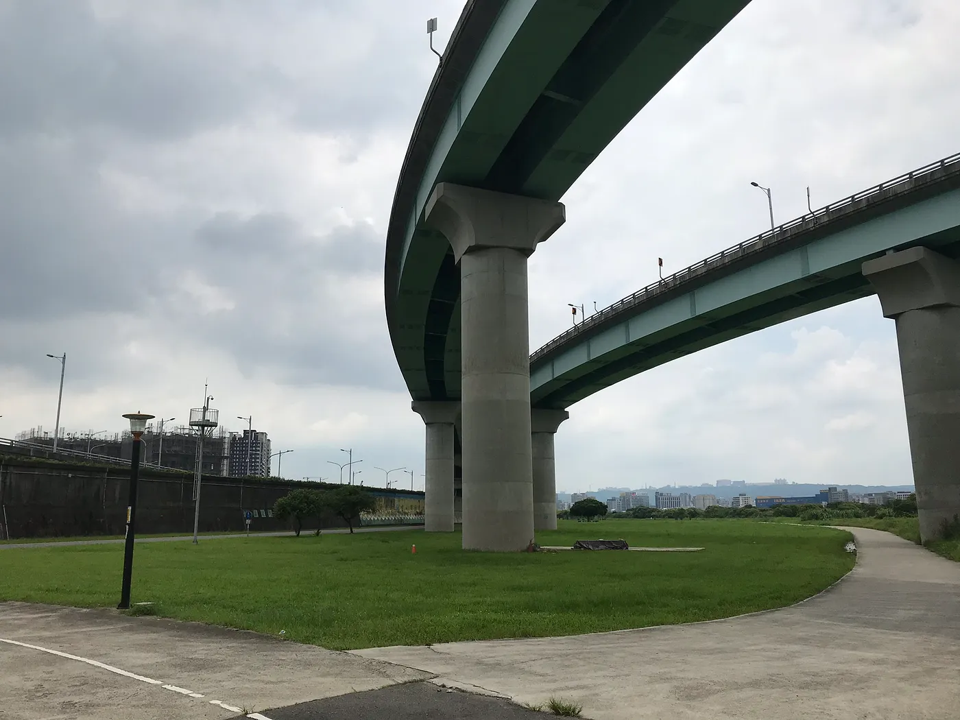 從溪北河濱公園自行車坡道接至佳興路,路口車多且無斑馬線到對側,橫越馬路危險,改走介壽路