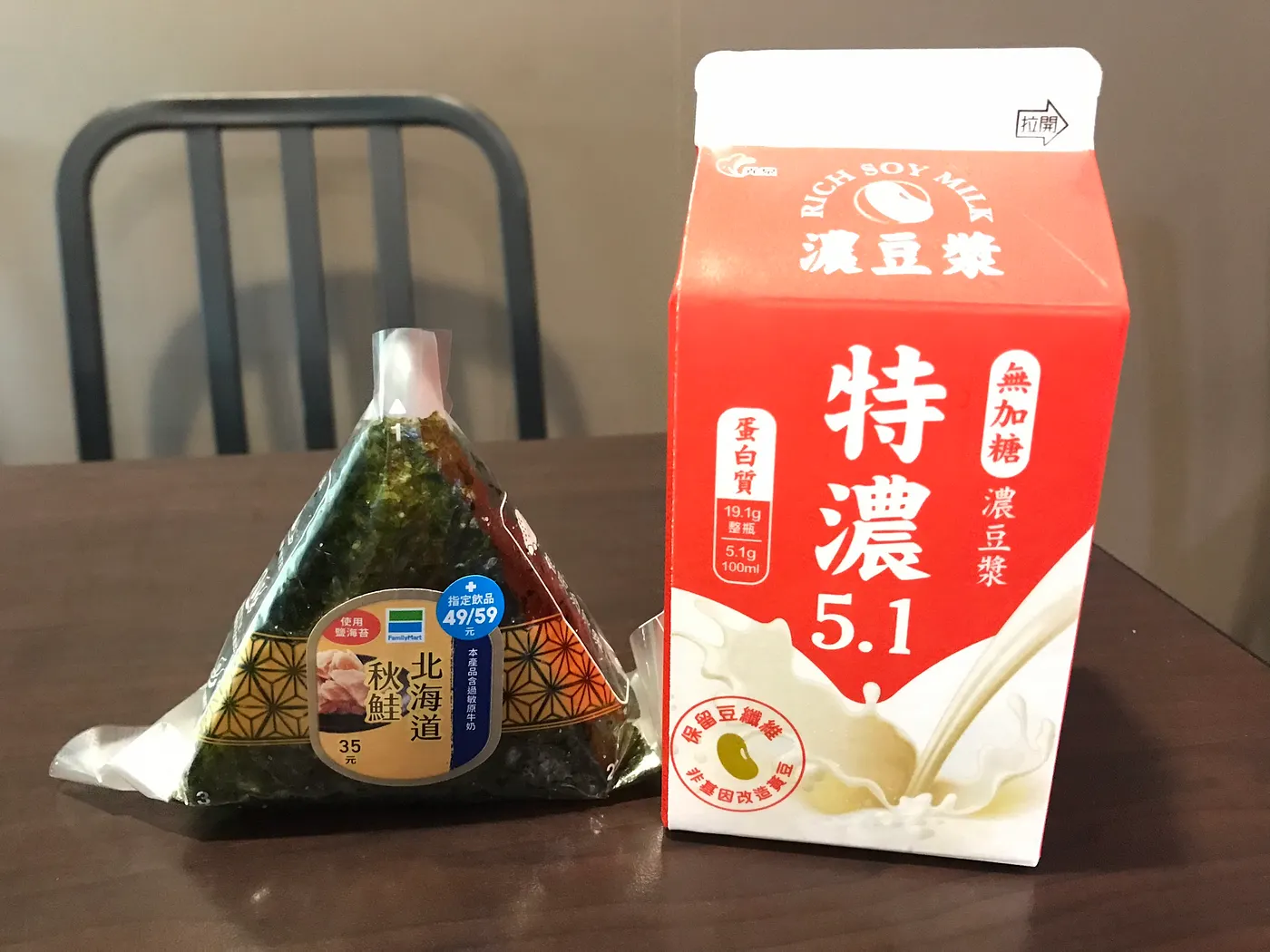 11點半在永和附近的全家吃御飯糰配豆漿,補充碳水化合物和蛋白質後(2份:3份),開始大熱天騎車一日遊